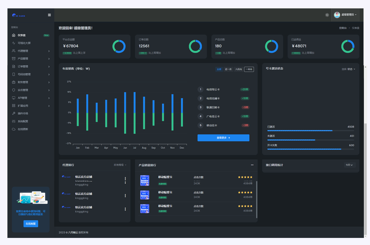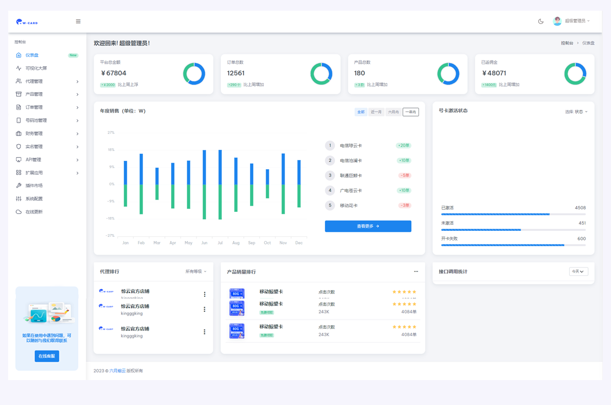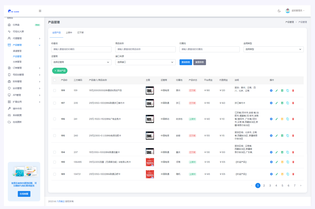 使用号卡屋订单管理系统系统,轻松管理代理商品,对接上下游,对接运营商!
